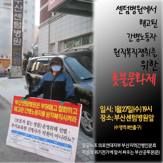 센텀병원간병노동자 촛불문화제 시작합니다 페이지 정보 작성자 부산지하철노동조합 쪽지보내기 메일보내기 자기소개 아이디로 검색 전체게시물 쪽지보내기 메일보내기 자기소개 아이디로 검색 전체게시물 댓글 0건 조회 3,477회 작성일 10-01-25 13:05 본문 목록 답변 이전글[성명] 더 이상 죽을 수 없다!! 대우조선해양에서 발생하고 있는 죽음의 행렬에 마침표를 찍자! 10.01.25 다음글부산택시현장활동가들의 투쟁기금마련을 위한... 10.01.25 댓글목록 댓글목록 등록된 댓글이 없습니다.