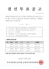 [부교선 공고 2025-21호] 2025년 운영서비스 단체협약 체결에 따른 조합원 총투표 공고(2025.10…