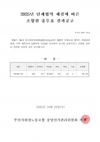 [부교선 공고 2025-25호] 2025년 운영서비스 단체협약 체결에 따른 조합원 총투표 결과공고(2025.…