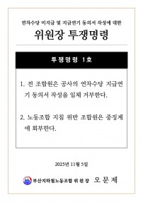 [투쟁명령 1호] 2025년 부산지하철노동조합 투쟁명령 1호