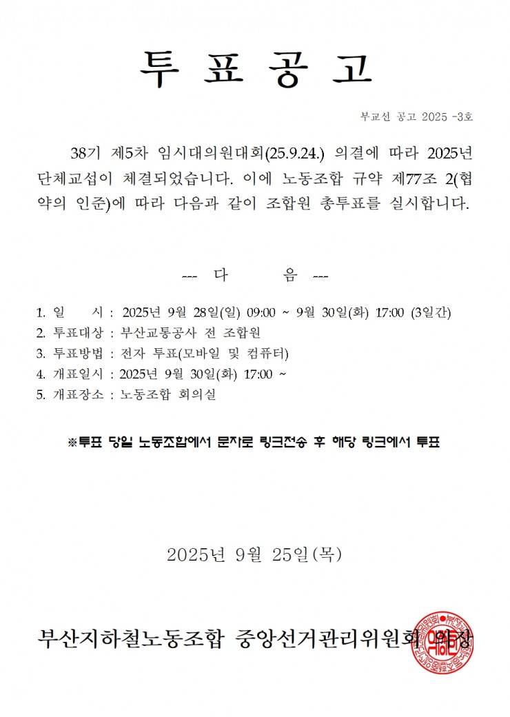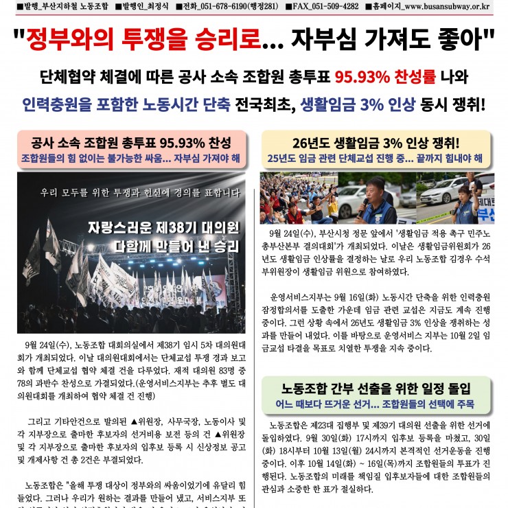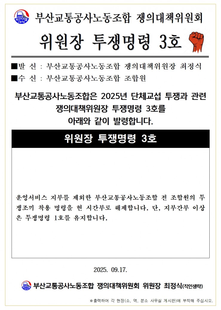 7월 3일(목), 10시 30분 부산시청 앞 광장에서 '2025년 단체교섭 승리를 위한 조합원 결의대회'를 진행하였다.폭염의 고통 속에서도 약 1000여 명의 조합원들이 모여 강인한 의지와 결의를 부산시와 사측에 보여주었다. 합의사항 이행을 …